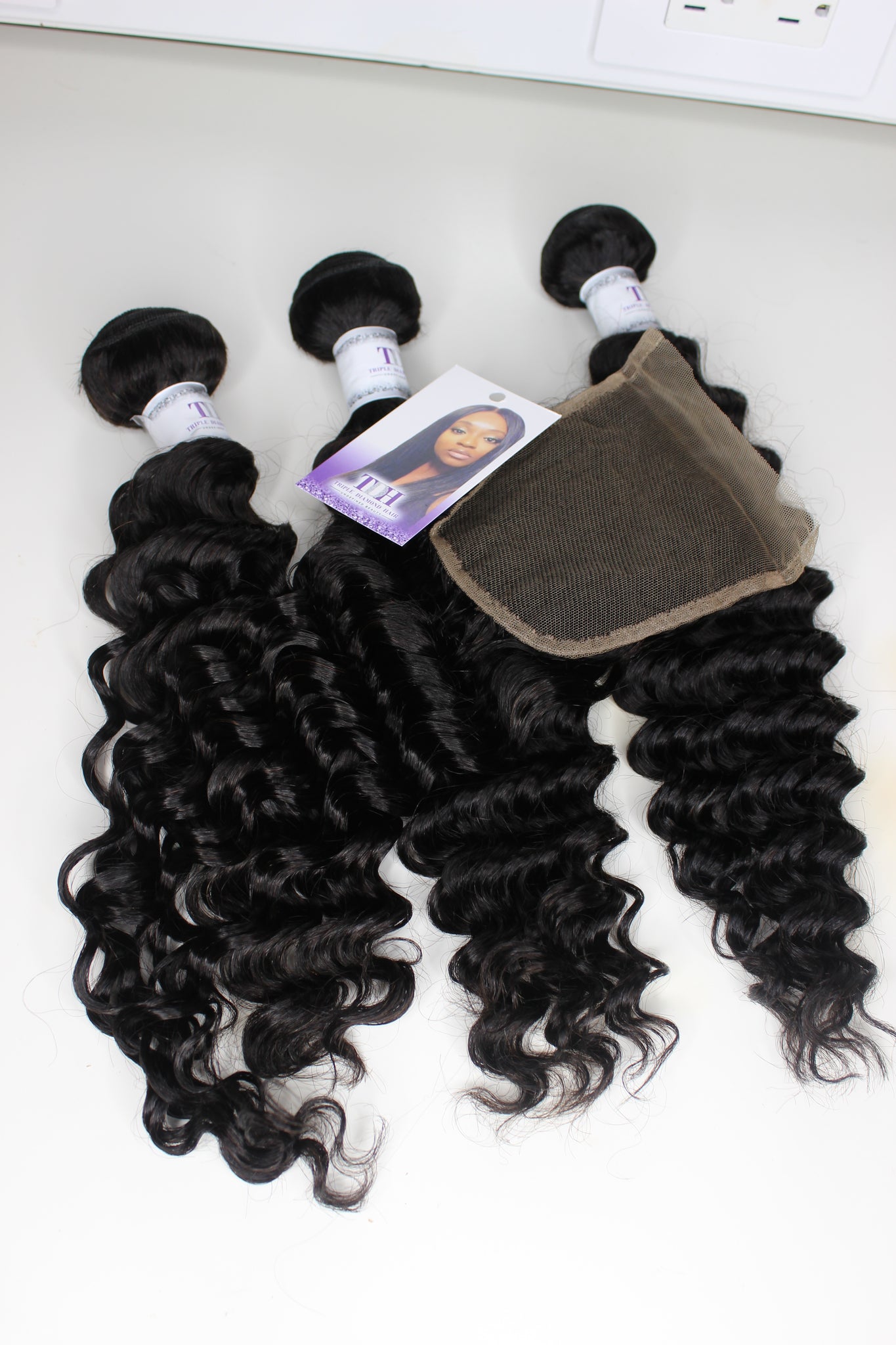 Brazilian Deep Wave Bundle Deals offer (3) bundles per package. The hair extensions can be colored and styled to your desired look.